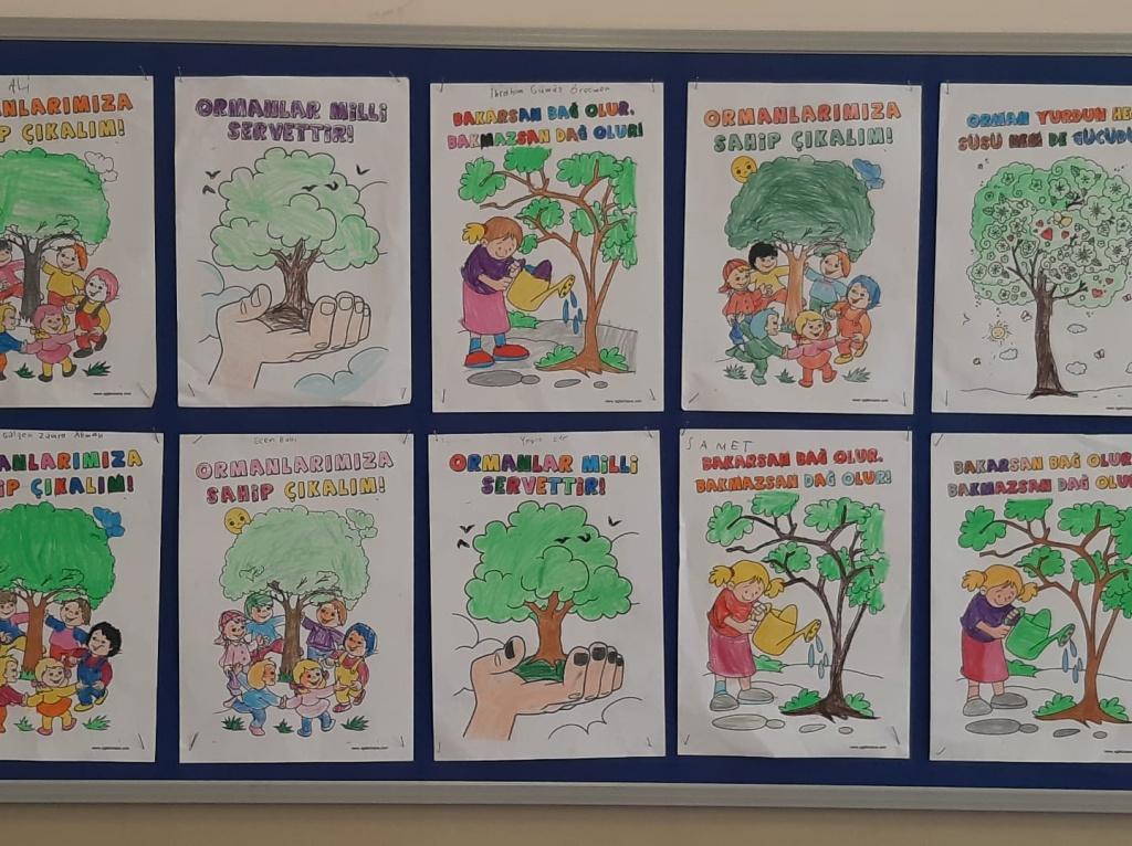 Ayrıca orman ve ağaç sevgisi temalı boyama ve pano çalışmaları yapıldı.