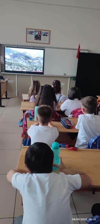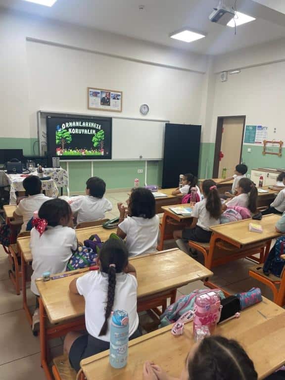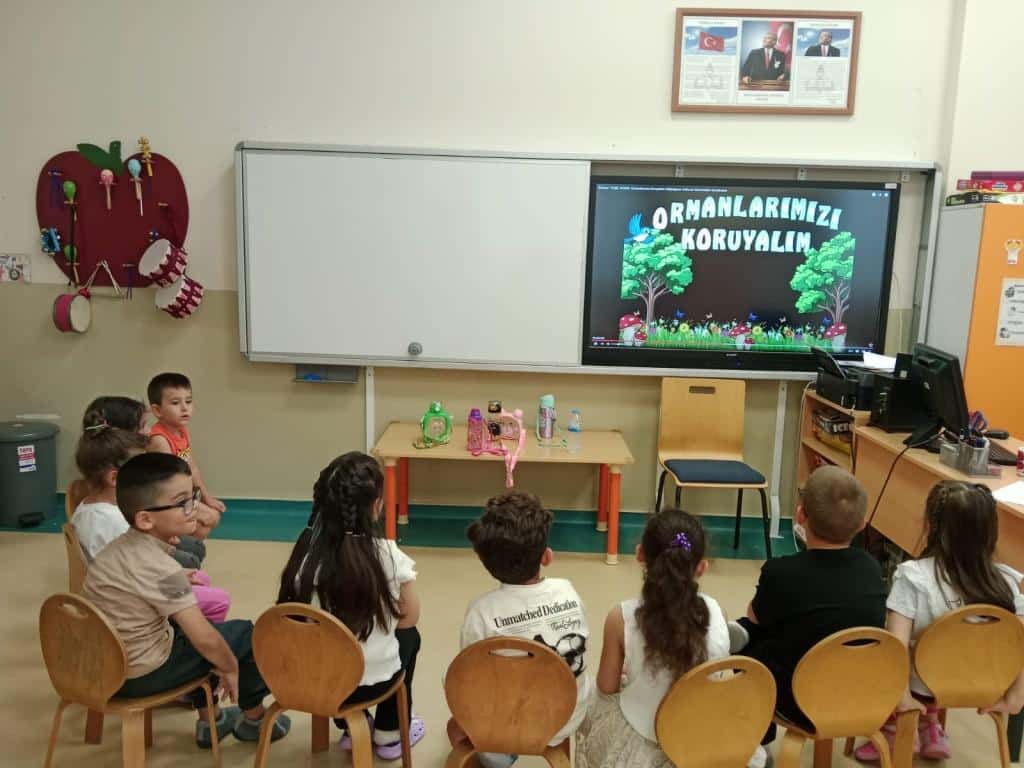 Dünyanın birçok yerinde ve ülkemizde yaşanan orman yangınları sebebiyle ormanların ve ormanlarda yaşayan hayvanların korunması için öğrencilerin bilinçlendirilmesi amacıyla düzenlenen Yeşil Vatan ve Benim Okulum Geleceğe Çare Etkinlikleri kapsamında Millî Eğitim Bakanlığının hazırladığı ders materyalleri tüm sınıflarda ilgiyle seyredildi.